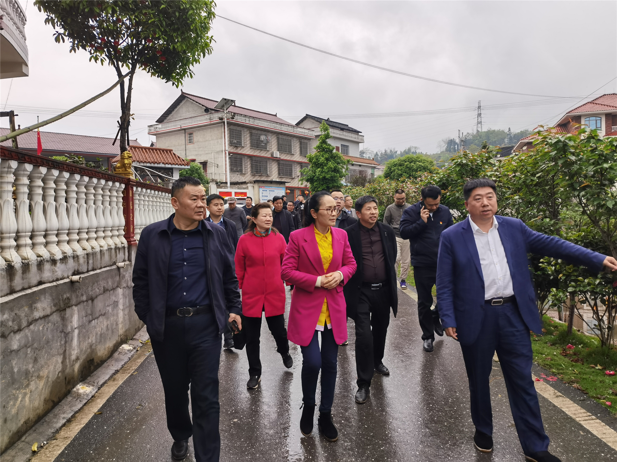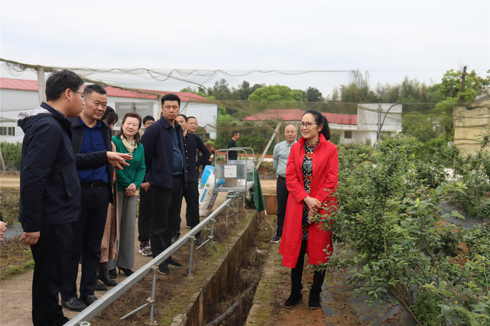 方爭奇(前左1)陪同邵瑛(前排中)一行在岳陽樓區郭鎮鄉考察